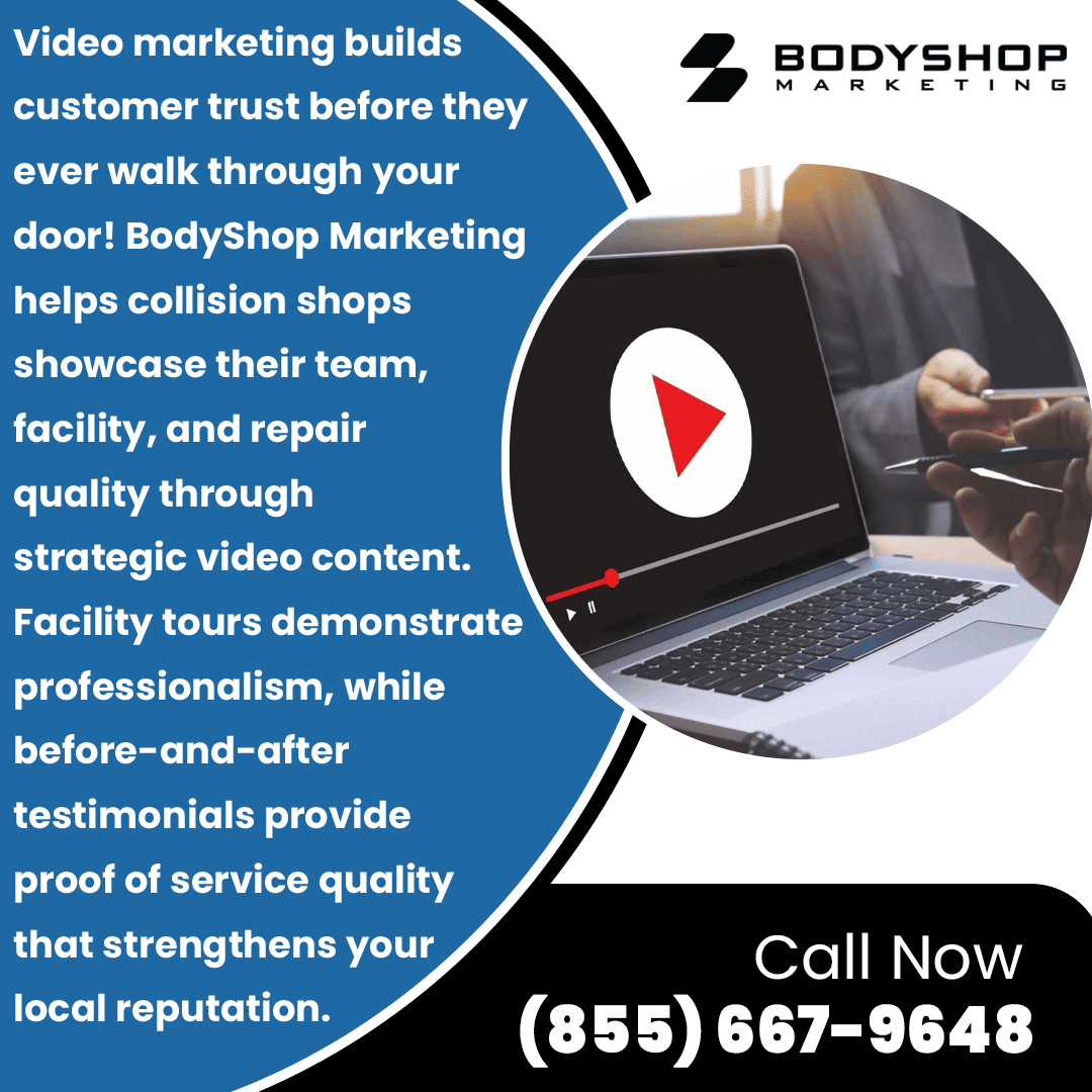BodyShop Marketing helps collision shops attract more customers and increase visibility. Auto body shops can connect with the team at (855) 667-9648 or email hello@bodyshopmarketing.io to implement video-focused collision repair marketing strategies that deliver measurable results.